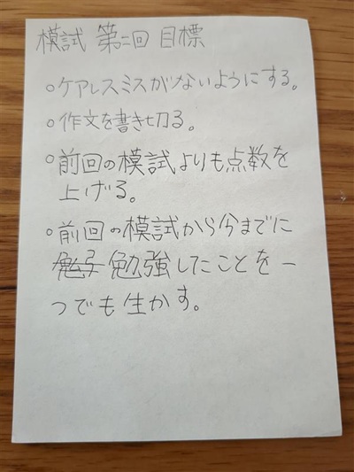 模試を受ける前に、娘が自分で今回のテストの目標を立てました。